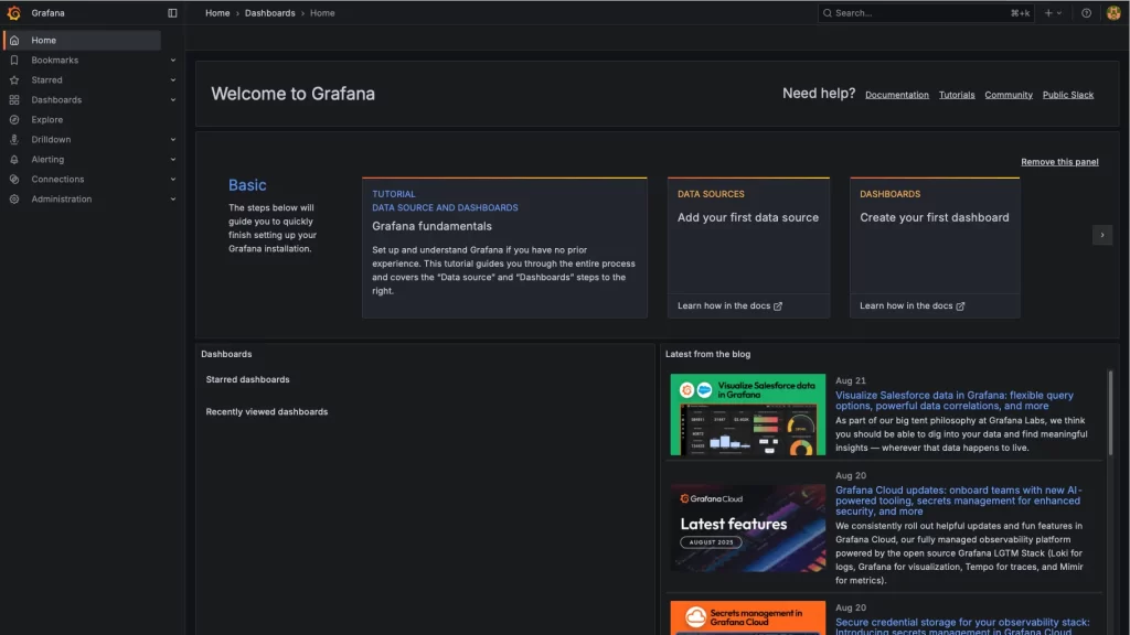 Beachten Sie, dass Grafana Cloud nicht verwendet wird und für die Installation in einer lokalen Umgebung gedacht ist.
