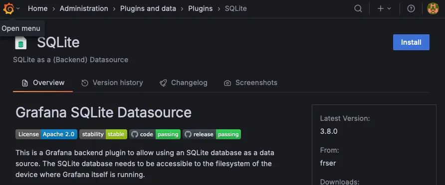 Verwaltung – > Plugins und Daten – > Plugins – > SQLite