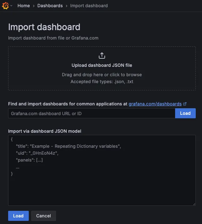 Bitte beachten Sie, dass dies nur für den Import von bereits erstellten Dashboard-Json-Dateien gilt.
