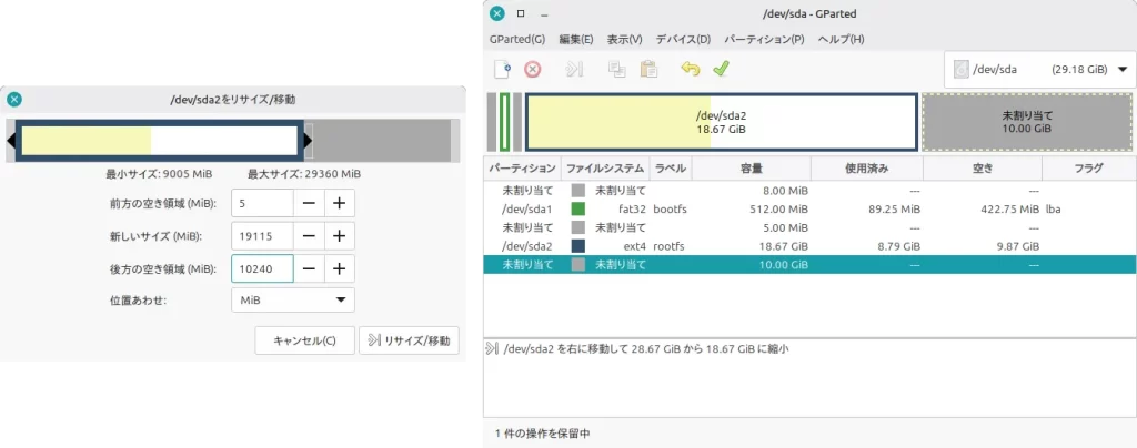 パーティションの分割手順は、Raspberry Pi OSのみならず、Ubuntu Desktopでも同じ作業ができます。
