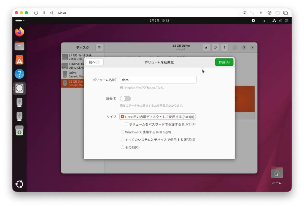 3.仮想ソフトウェア(UTMなど)を使いUbuntuをインストールし、標準Disksアプリなどで作業する。(Windows/Linux)